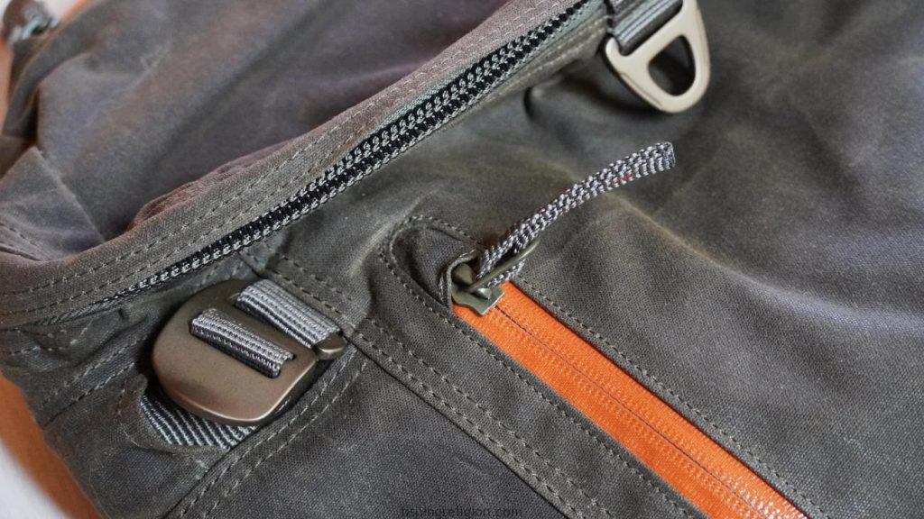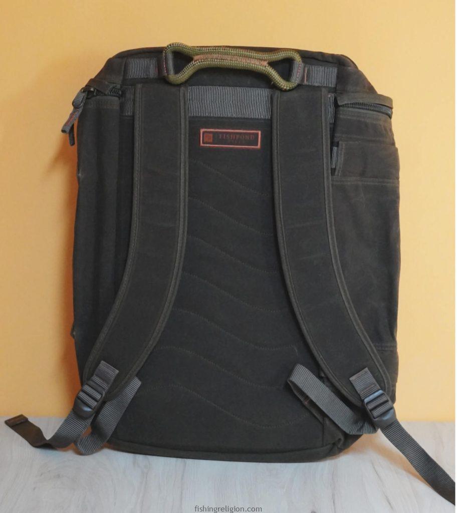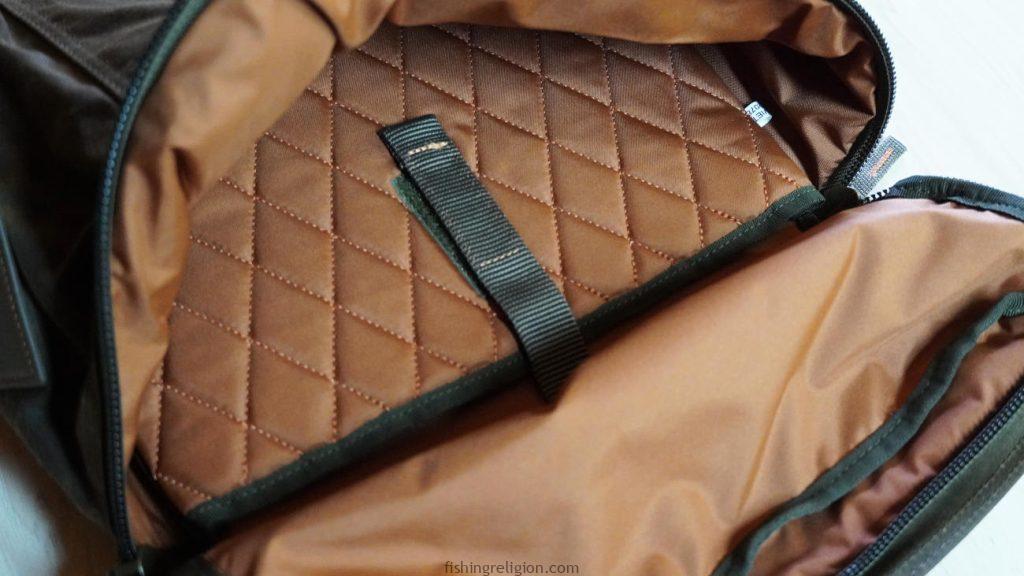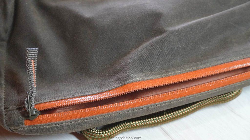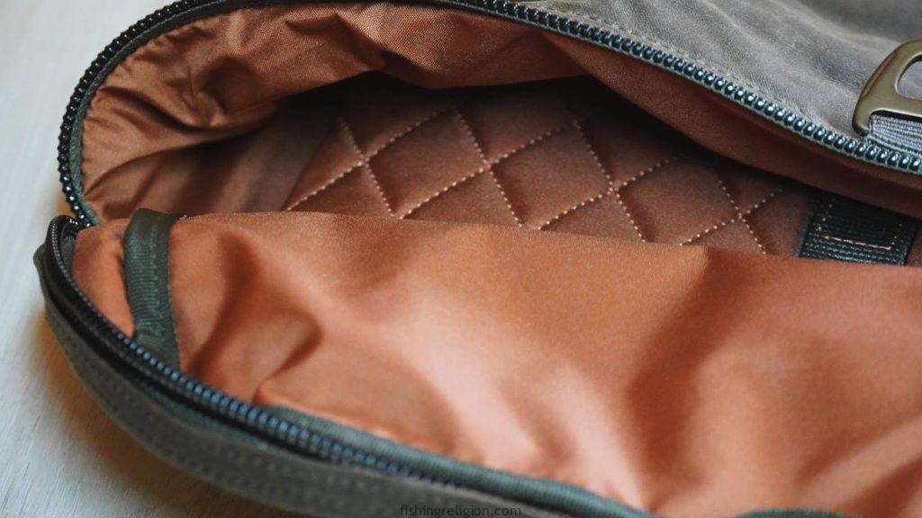 Unlike many modern fishing backpacks made entirely from synthetic fabrics, this model uses 10.10 oz certified organic waxed cotton on the outside.