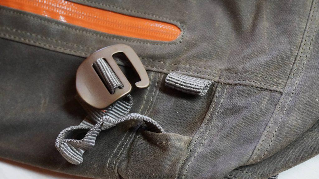 On the sides, the backpack features adjustable gear straps with tension buckles. These are extremely useful for anglers who carry extra equipment.