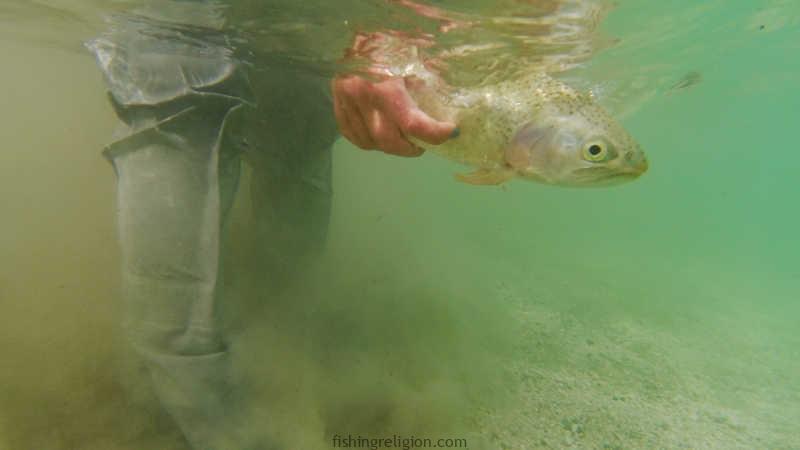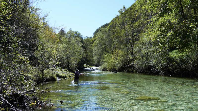 Fly fishing often means moving upstream, over rocks, through mud, or around bends in the river.