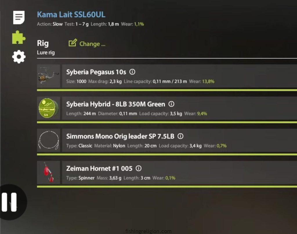 When fishing on ultra light tackle in Russian Fishing 4, unexpected larger fish sometimes take the bait. I usually compare the pressure load and estimated strength before deciding whether to fight patiently or safely break the line to protect my gear.